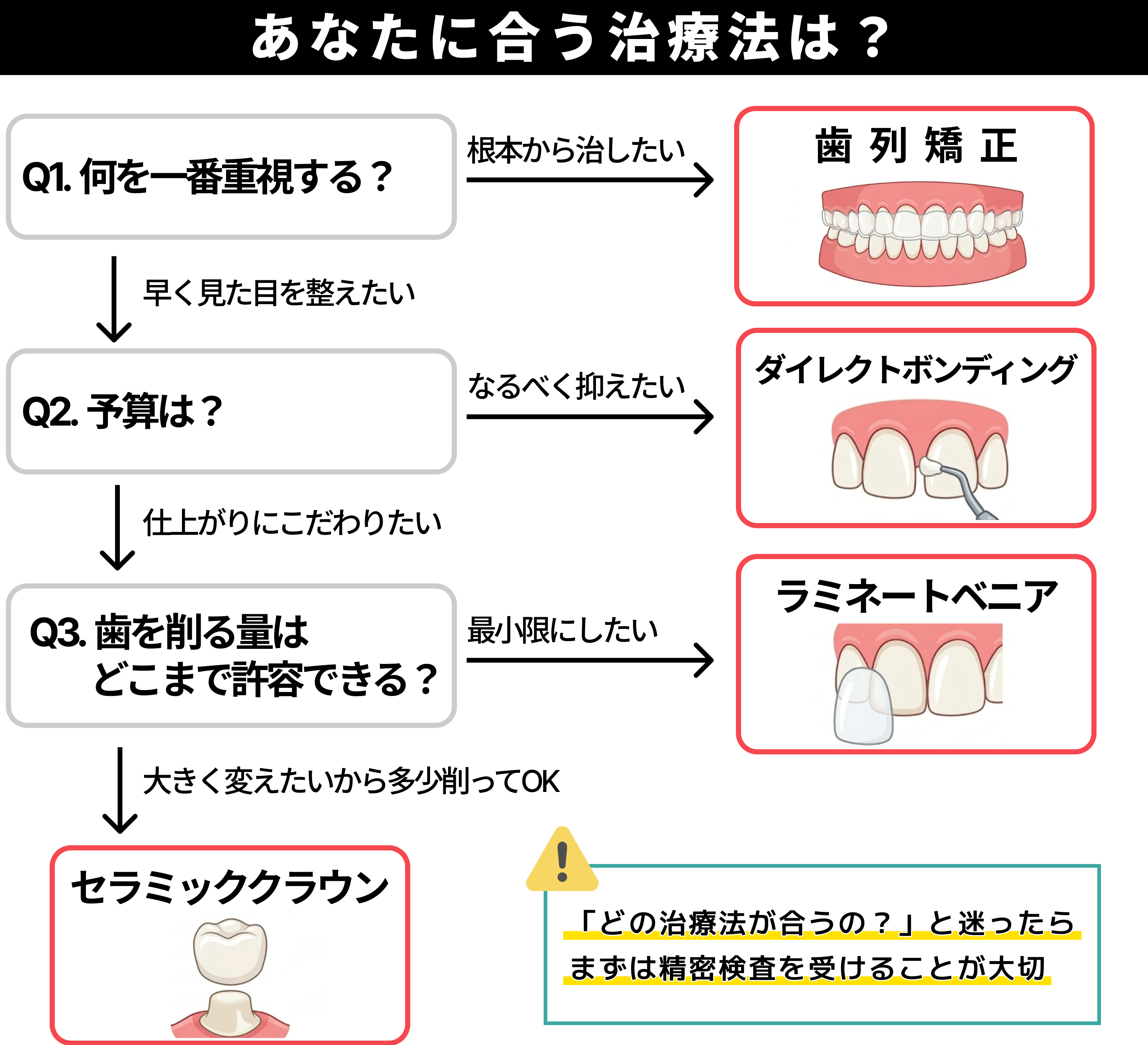 かんたんな質問に答えるだけで、治療プランと費用の目安がすぐにわかるので、試してみてください。