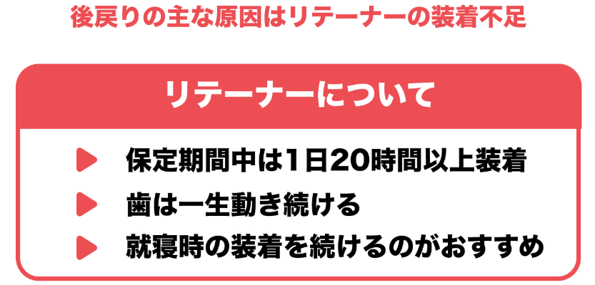 リテーナーについて詳しくは「リテーナーの装着時間や期間を解説」をご覧ください。