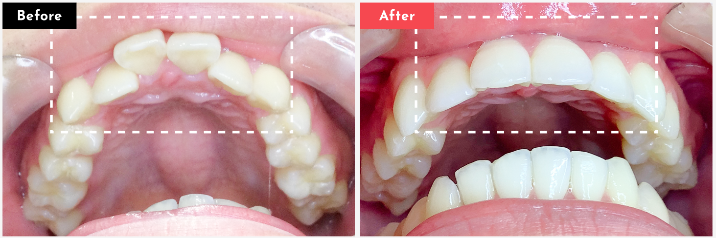 - 治療内容: 非抜歯/部分矯正/研磨処置込