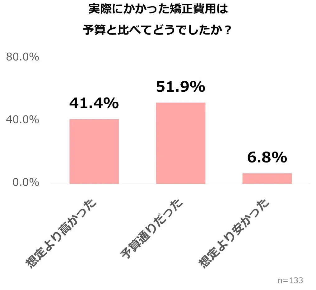実際にマウスピース矯正経験者に調査したところ、4割以上が「想定より費用が高くなった」と回答。