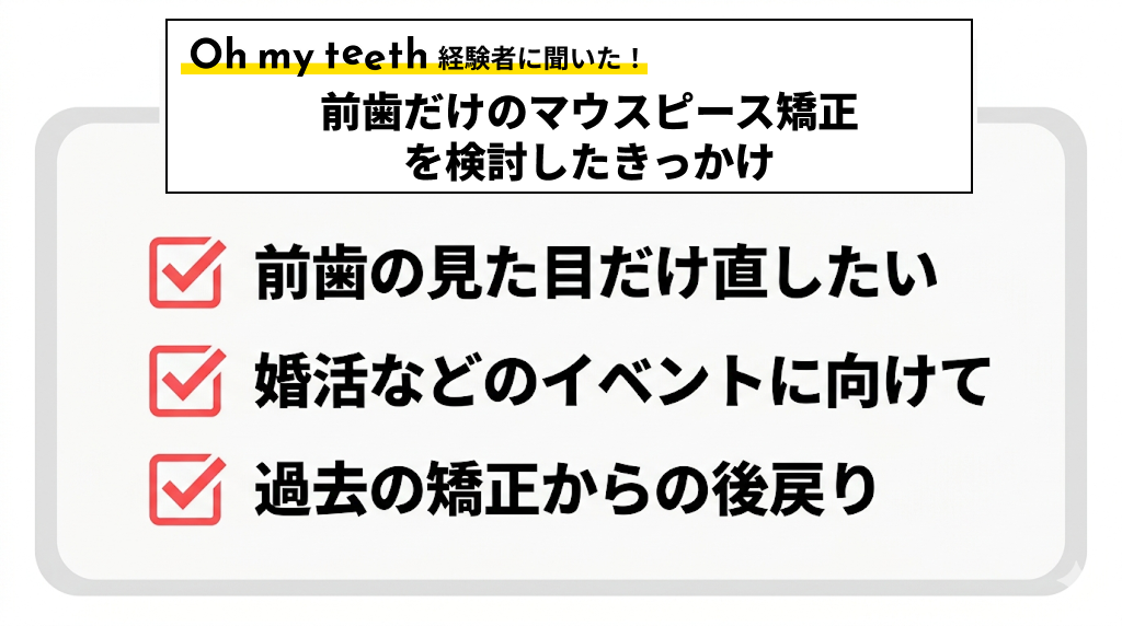 【きっかけ紹介】前歯だけのマウスピース矯正を選んだ理由