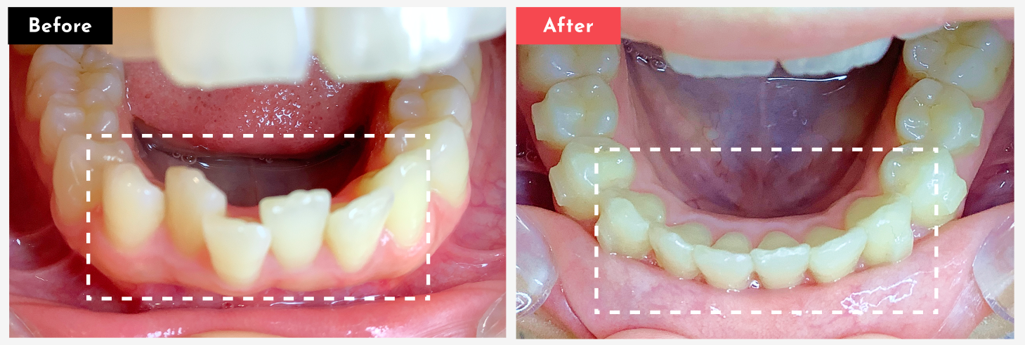 ただし、1本だけを動かすのではなく、周囲の歯もバランスよく動かす必要があるため、実際には複数の歯を対象とした治療になることがほとんどです。