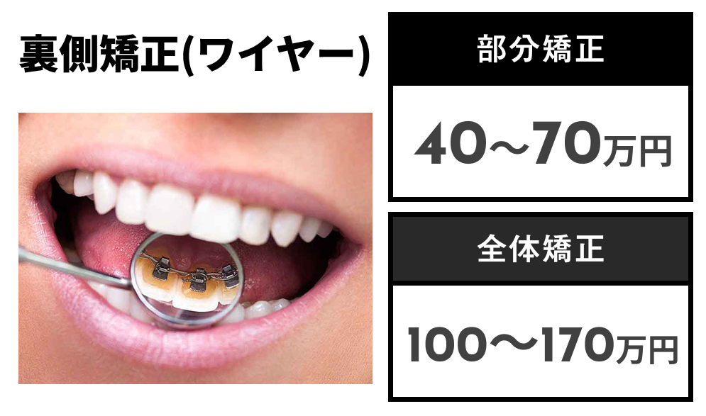 - 裏側矯正(ワイヤー矯正)の部分矯正:40万〜70万円