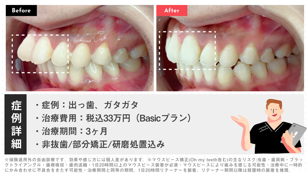 こちらは、33万円・3ヶ月で出っ歯を改善した例です。