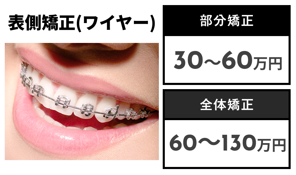 - 表側矯正(ワイヤー矯正)の部分矯正:30万〜60万円