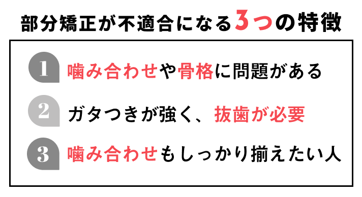 - 部分矯正をおすすめしない・できない人の特徴3選