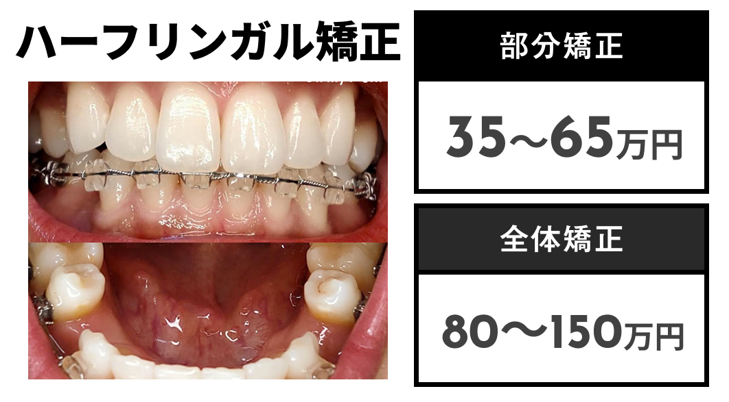 - ハーフリンガル矯正の部分矯正:35万〜65万円程度