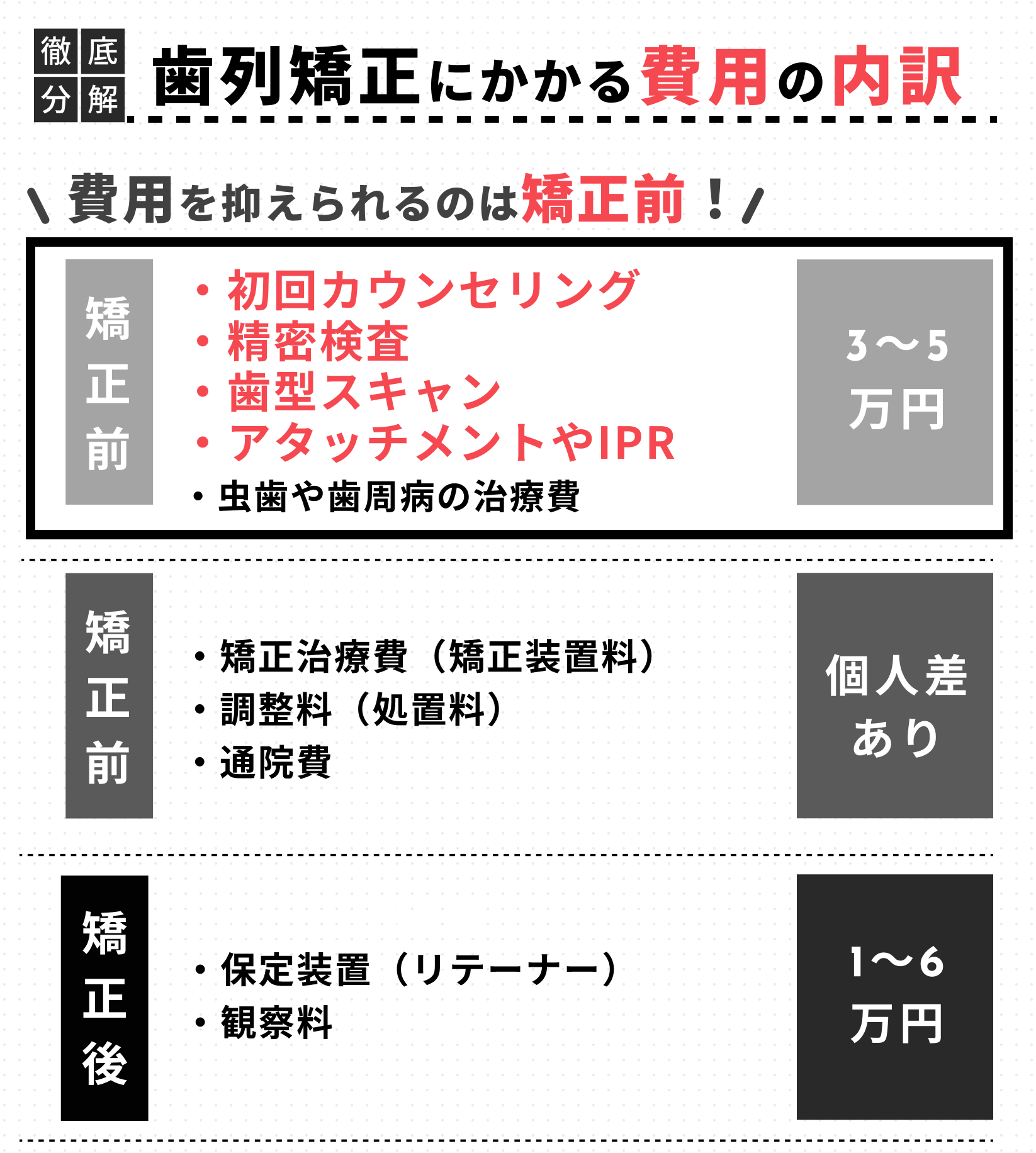矯正を始める前の段階でどこまで無料なのかを確認しておくと安心です。