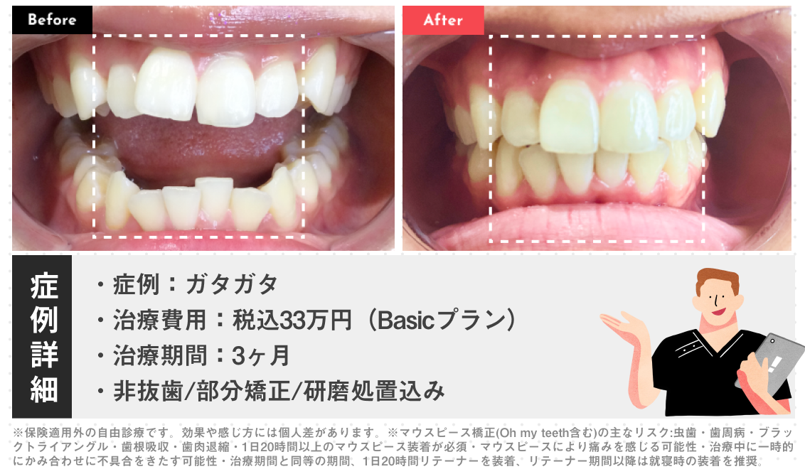 ここでは、 実際にマウスピース矯正「Oh my teeth」の上下前歯の部分矯正プラン(Basicプラン)の症例を紹介します。