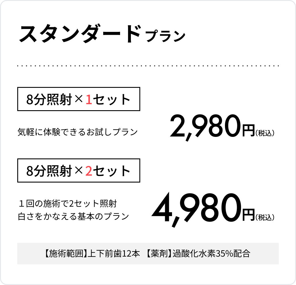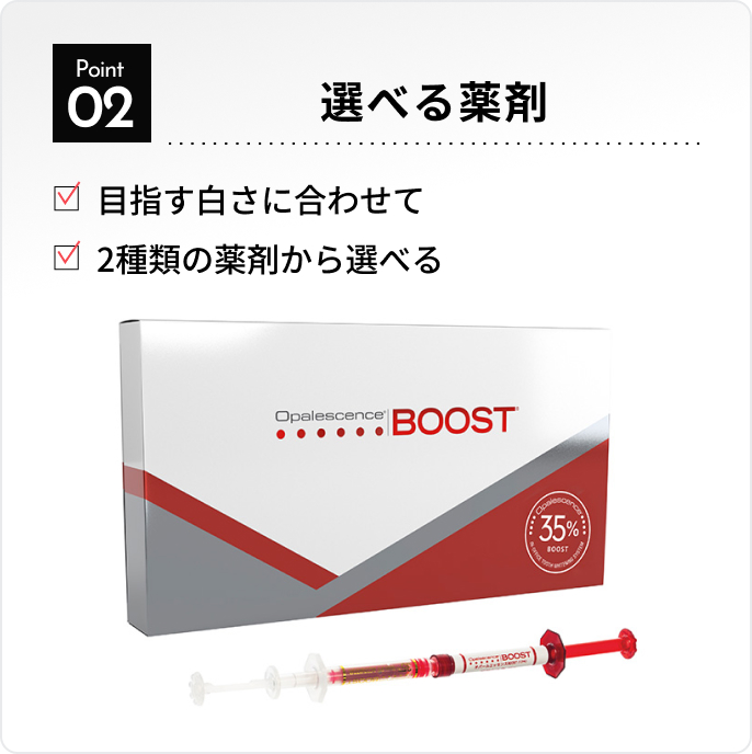 目標の白さに合わせて薬剤・照射回数の調整ができるため、ご安心ください。